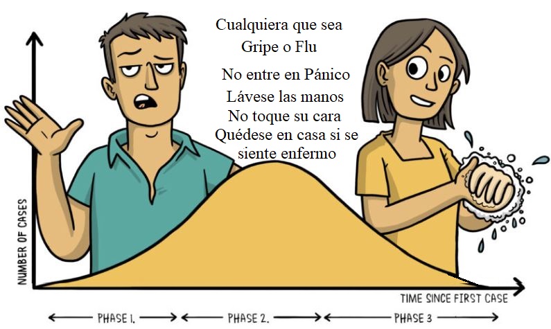 No entre en pánico y corra al supermercado a comprar todo el papel higiénico que pueda encontrar. Infórmese y actúe con calma y responsabilidad. Éste es un problema que podemos resolver juntos. Esto pasará y ahora hay muchas personas realmente inteligentes trabajando en el problema y se están probando muchos medicamentos. Con el tiempo también se fabricará una vacuna. La epidemia seguirá una curva, donde las cosas empeorarán y luego mejorarán. Si nos informamos y hacemos nuestra parte, mejorarán mucho más rápido. Entre más medidas se implementen para detener la propagación, más tiempo tardará la epidemia a llegar a su pico, dándole más tiempo a los hospitales para atender a los enfermos. Además de reducirán el número de casos en total en lo que se estudian y se crean nuevas vacunas.