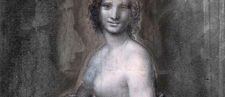La «Gioconda desnuda» es un dibujo al carboncillo que representa una mujer con los pechos desnudos, una tímida sonrisa, sentada en la misma posición que la célebre Gioconda del Museo del Louvre.